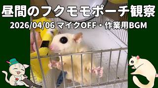 【#フクロモモンガ】 2026/04/06 朝配信後の様子:夜行性フクモモは昼間に起きることあるのか?【ポーチ観察】【#作業用bgm】