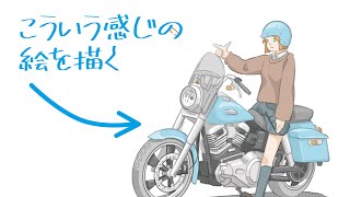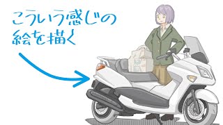 原付でソロキャンプに向かう女子【バイクイラストメイキング】